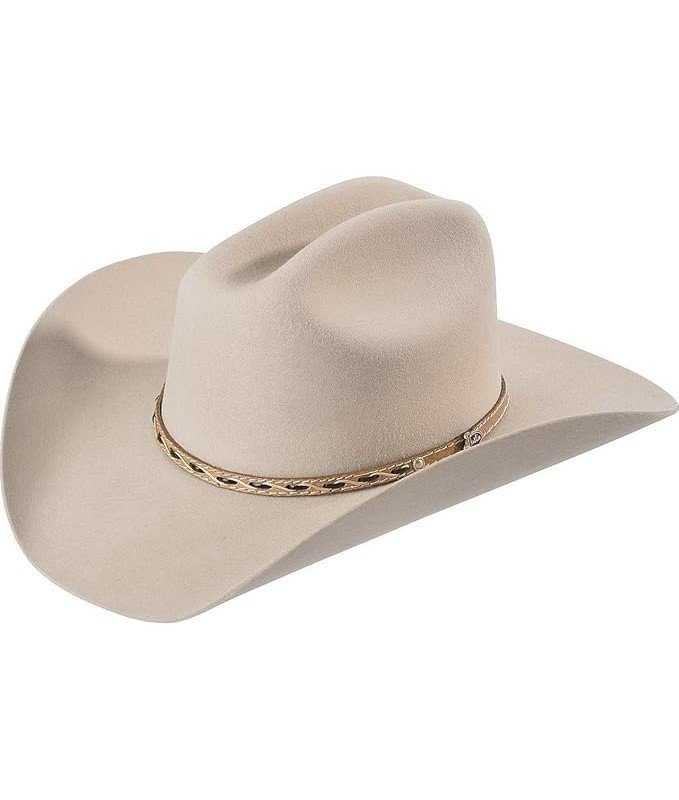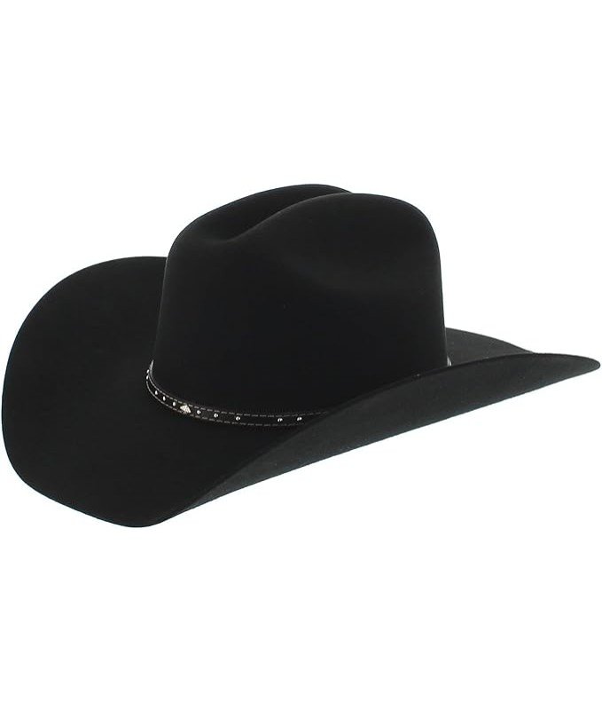 Hat showcases a traditional cattleman crease with a tight crease down the center of the crown and a flange brim for a classic look.